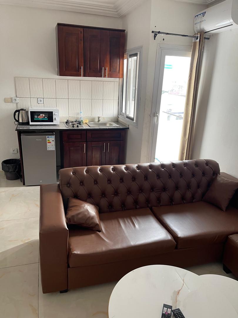 Studio meublé de 4 pièces, 1 salon, 1 chambre, 1 cuisine et 1 salle de bains.